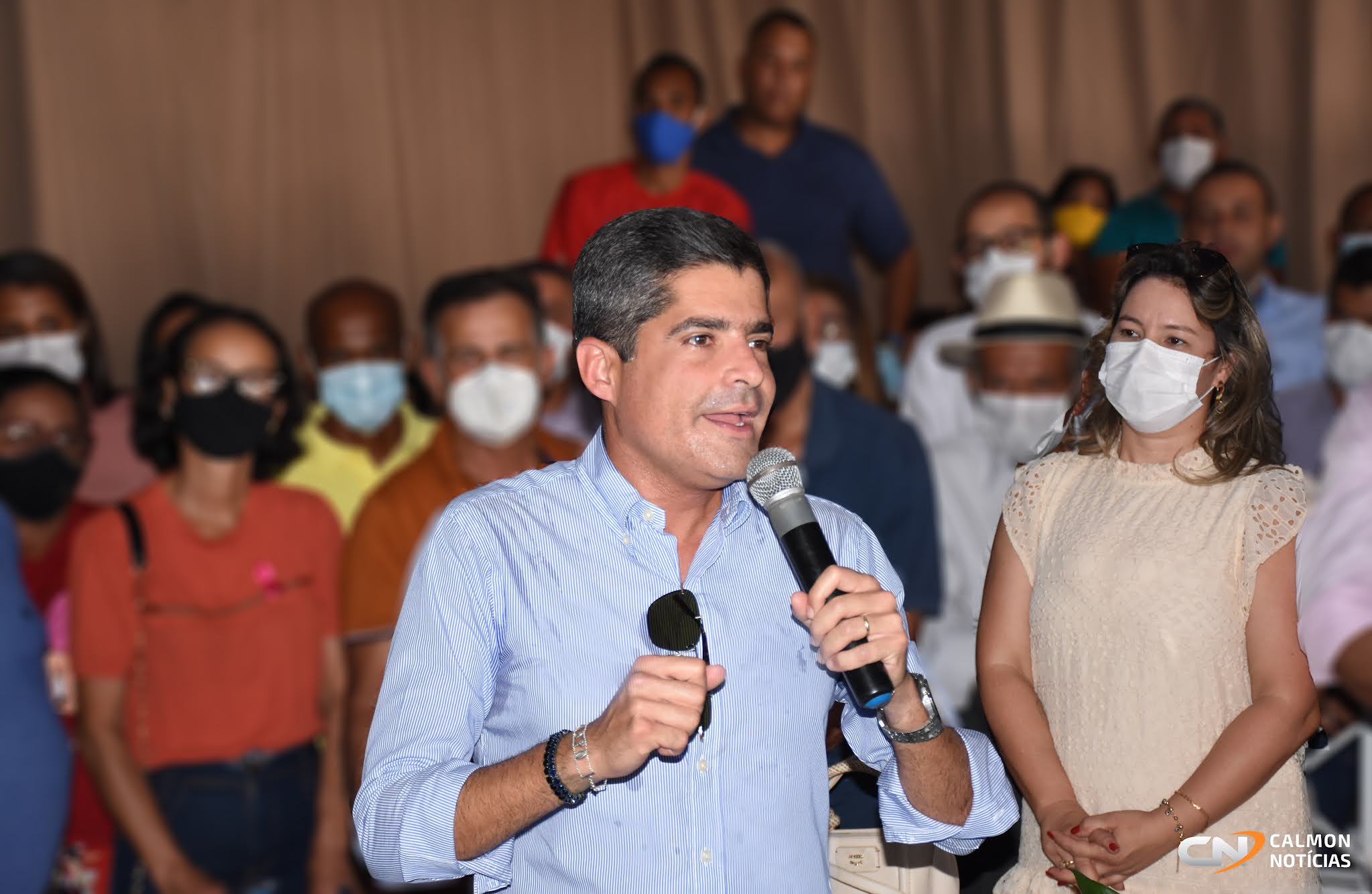 "É uma alegria está aqui em Mundo Novo, data especial, comemoração dos 188 anos da cidade, tendo o privilégio de ser recebido pelo prefeito Adriano e poder abraçar diversas lideranças do município e da região. Tive oportunidade de ver as obras que o prefeito vem realizando e trazer a nossa mensagem. A região aqui é muito forte, tem um potencial enorme e a gente tem procurado exatamente isso, conversar com as pessoas, ouvir as pessoas, entender quais são seus sonhos e desejos e acima de tudo olhar pro futuro com uma visão diferente para a Bahia, uma Bahia onde os baianos tenham orgulho da sua terra". Disse Neto durante entrevista ao repórter Anderson Costa.
